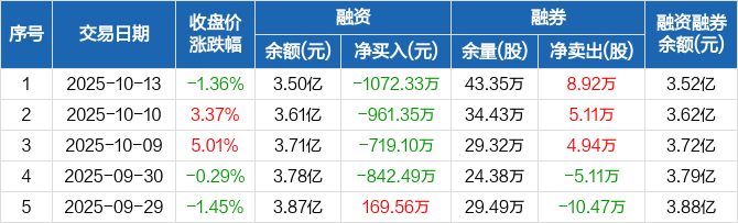 中油工程:连续4日融资净偿还累计3595.26万元(10-13)