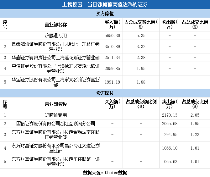 沪股通现身龙虎榜,华夏幸福涨停(12-02)