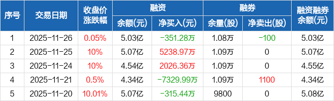 航天动力:融资净偿还351.28万元,融资余额5.03亿元(11-26)
