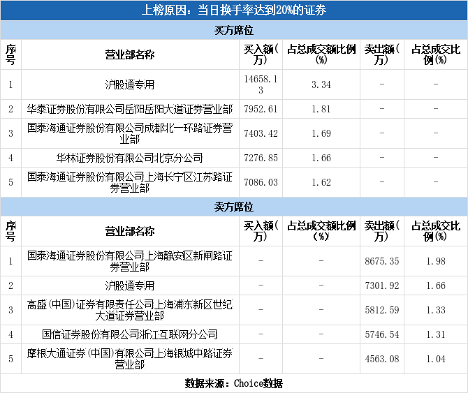 沪股通现身龙虎榜,航天动力换手率达26.23%(12-05)