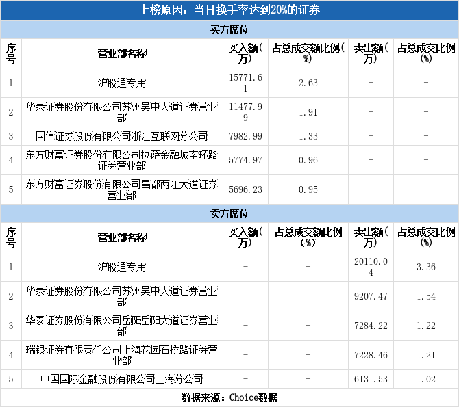沪股通现身龙虎榜,航天动力换手率达24.35%(12-15)