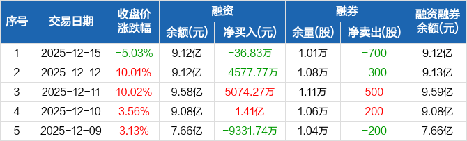 航天动力:融资净偿还36.83万元,融资余额9.12亿元(12-15)