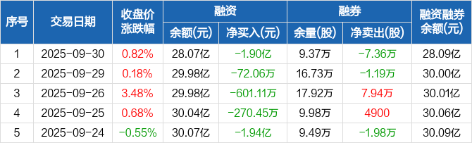 恒力石化:融资余额28.07亿元,创近一年新低(09-30)