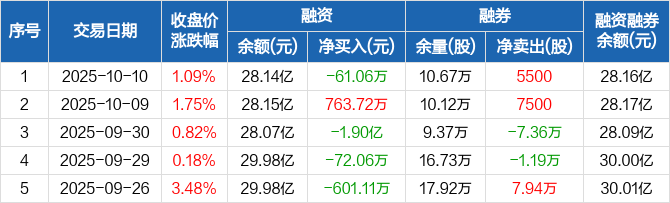 恒力石化:融资净偿还61.06万元,融资余额28.14亿元(10-10)