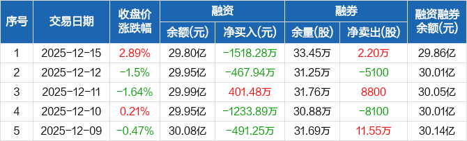恒力石化:融资净偿还1518.28万元,融资余额29.8亿元(12-15)