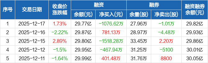 恒力石化:融资净偿还1076.62万元,融资余额29.77亿元(12-17)