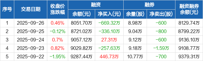 山东高速:融资净偿还669.32万元,融资余额8051.7万元(09-26)