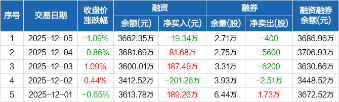 山东高速:融资净偿还19.34万元,融资余额3662.35万元(12-05)