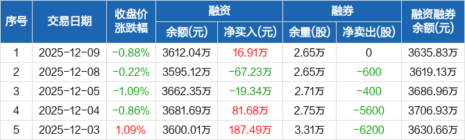 山东高速:融资净买入16.91万元,融资余额3612.04万元(12-09)