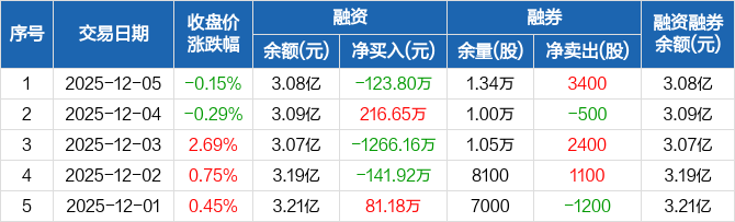 亚宝药业:融资净偿还123.8万元,融资余额3.08亿元(12-05)