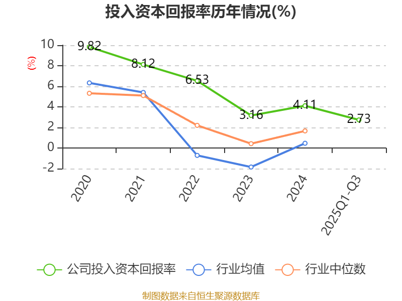 盈利能力方面, 2025年前三季度公司加权平均净资产收益率为4.04%,同比持平。公司2025年前三季度投入资本回报率为2.73%,较上年同期上升0.12个百分点。