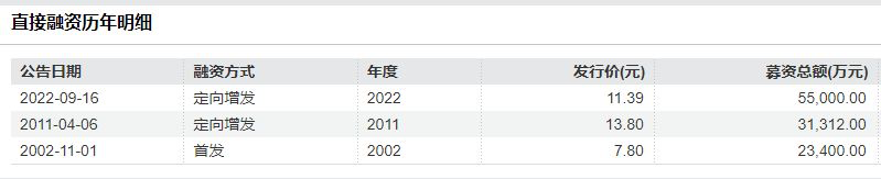 Wind金融终端数据显示,旭光电子A股首发募资2.34亿元,于2011年4月和2022年9月,公司分别完成两次约3.13亿元和5.5亿元的定增募资。