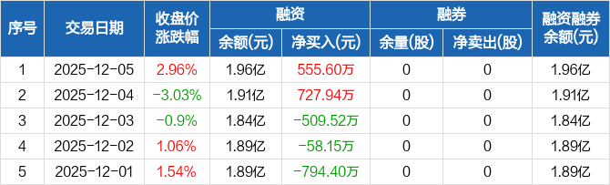 敦煌种业:融资净买入555.6万元,融资余额1.96亿元(12-05)