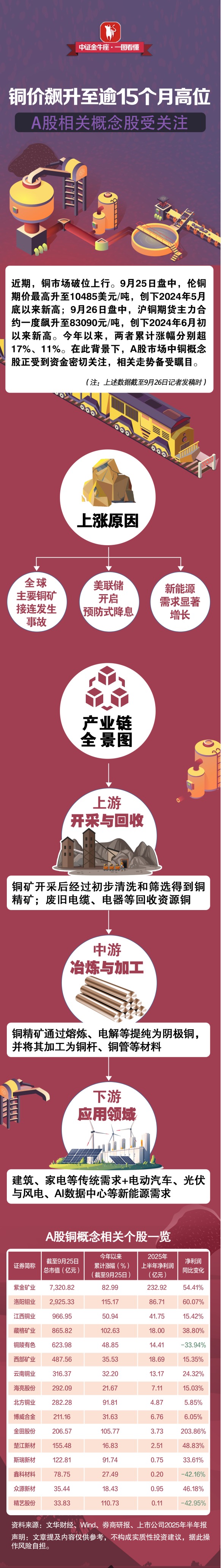 【聚焦原材料】铜价飙升至逾15个月高位,A股相关概念股受关注