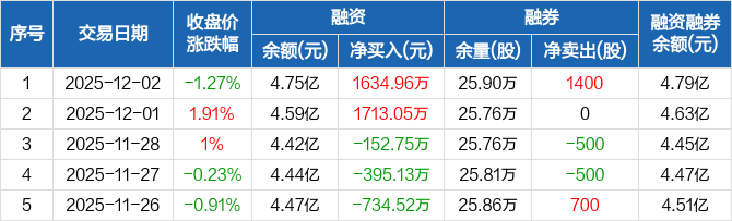 宁波韵升:融资净买入1634.96万元,融资余额4.75亿元(12-02)