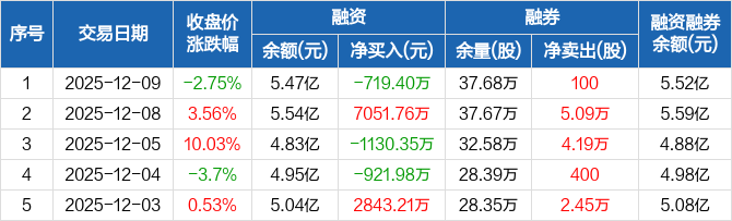 宁波韵升:融资净偿还719.4万元,融资余额5.47亿元(12-09)