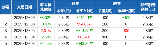 红星发展:融资净偿还219.21万元,融资余额2.84亿元(12-09)