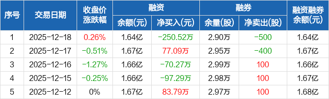 五洲交通:融资净偿还250.52万元,融资余额1.64亿元(12-18)