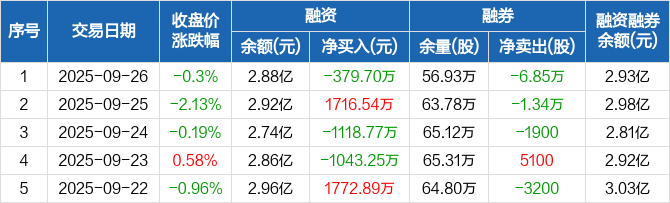 中文传媒:融资净偿还379.7万元,融资余额2.88亿元(09-26)