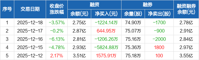 首开股份:融资净偿还1224.14万元,融资余额2.75亿元(12-18)