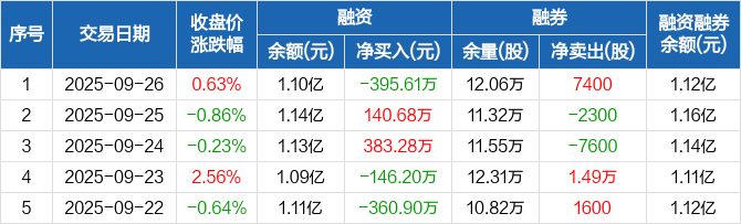 宁沪高速:融资净偿还395.61万元,融资余额1.1亿元(09-26)