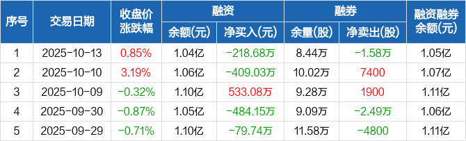 宁沪高速:融资净偿还218.68万元,融资余额1.04亿元(10-13)