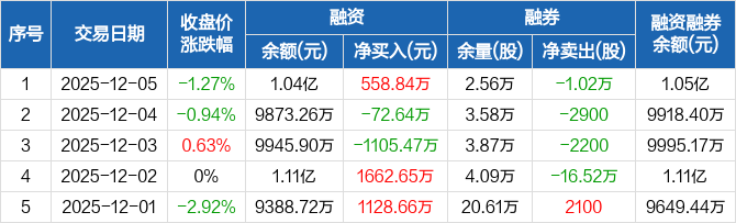宁沪高速:融资净买入558.84万元,融资余额1.04亿元(12-05)