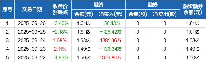 宝光股份:融资净偿还56.13万元,融资余额1.61亿元(09-26)
