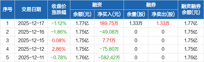 宝光股份:融资净买入189.75万元,融资余额1.77亿元(12-17)