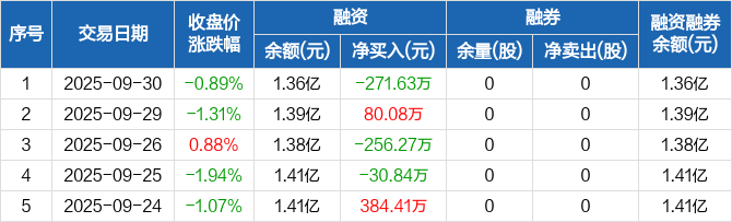 北巴传媒:融资净偿还271.63万元,融资余额1.36亿元(09-30)