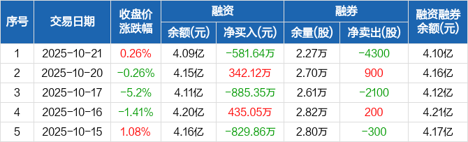 航发科技:融资净偿还581.64万元,融资余额4.09亿元(10-21)