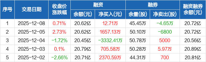 盛和资源:融资净买入12.71万元,融资余额20.62亿元(12-08)