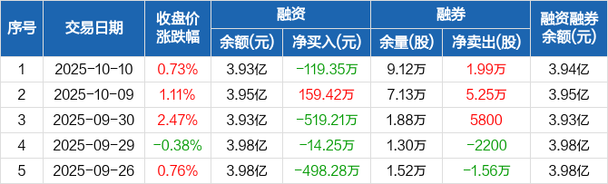 盘江股份:融资净偿还119.35万元,融资余额3.93亿元(10-10)