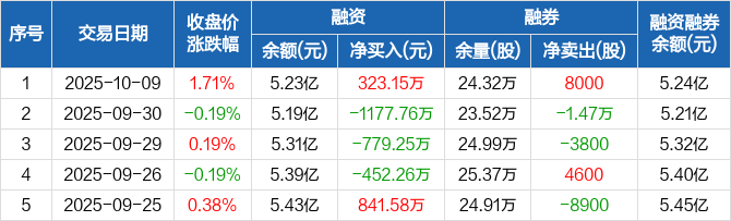 抚顺特钢:融资净买入323.15万元,融资余额5.23亿元(10-09)