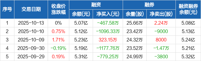 抚顺特钢:融资净偿还467.58万元,融资余额5.07亿元(10-13)