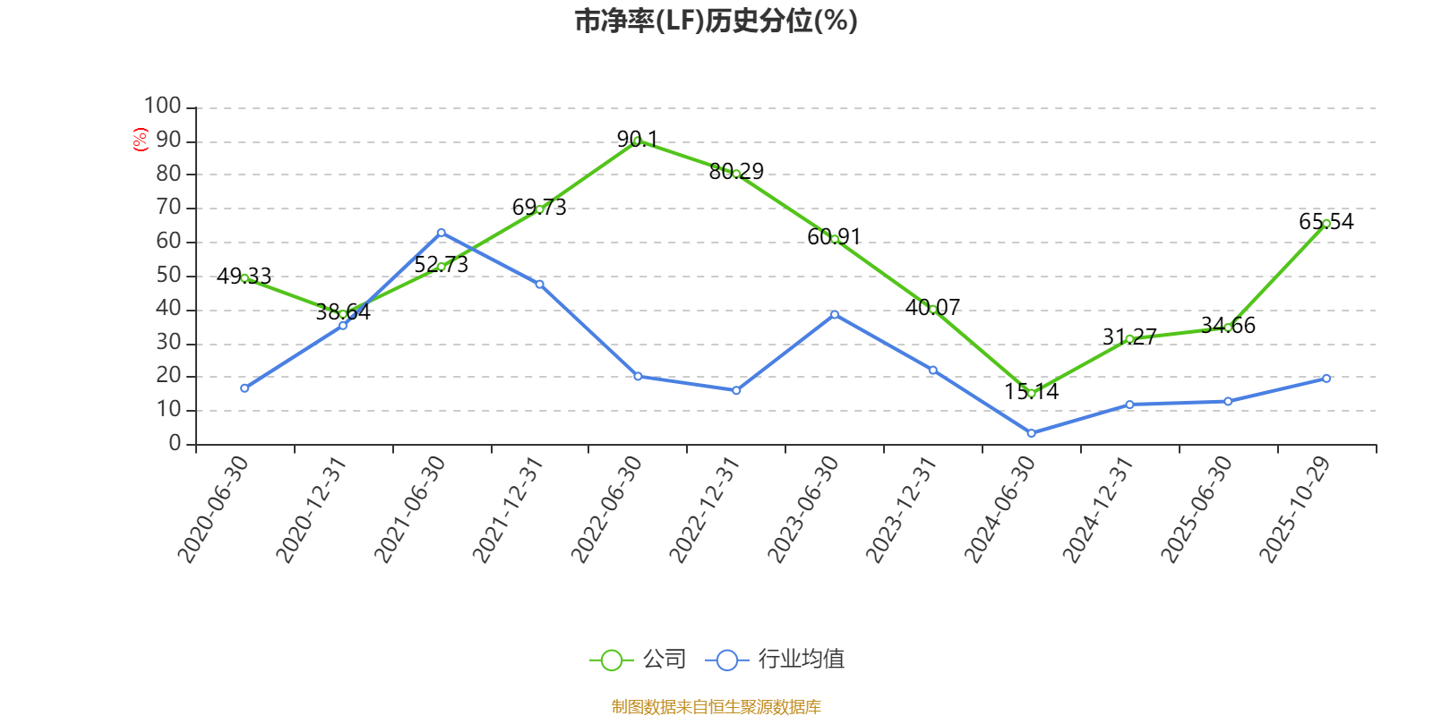 市盈率、市净率为负时,不显示当期分位数,会导致折线图中断。