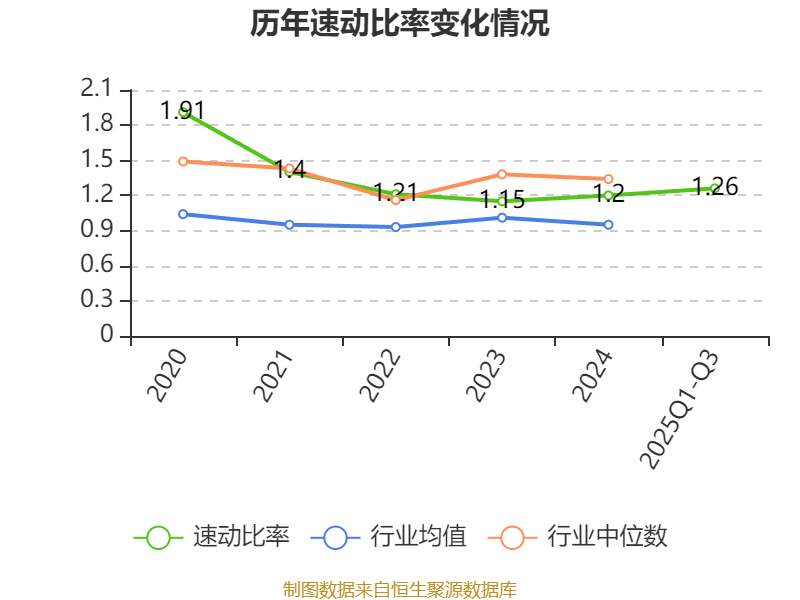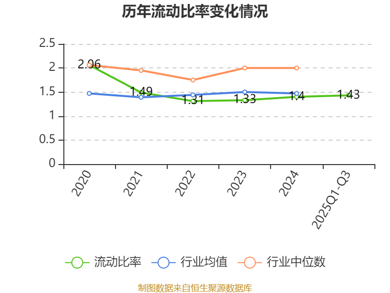 2025年前三季度,公司流动比率为1.43,速动比率为1.26。