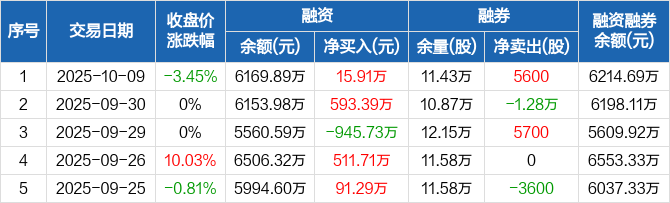 大有能源:融资净买入15.91万元,融资余额6169.89万元(10-09)