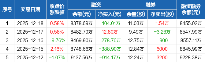 大有能源:融资净偿还104.01万元,融资余额8378.69万元(12-18)