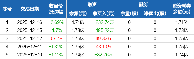 动力源:融资净偿还232.74万元,融资余额1.71亿元(12-16)