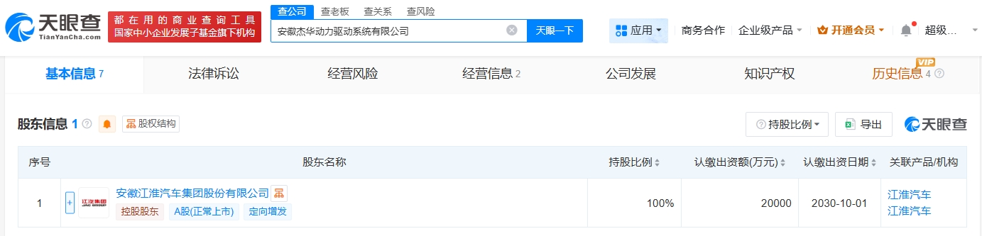 江淮汽车成立动力驱动系统公司