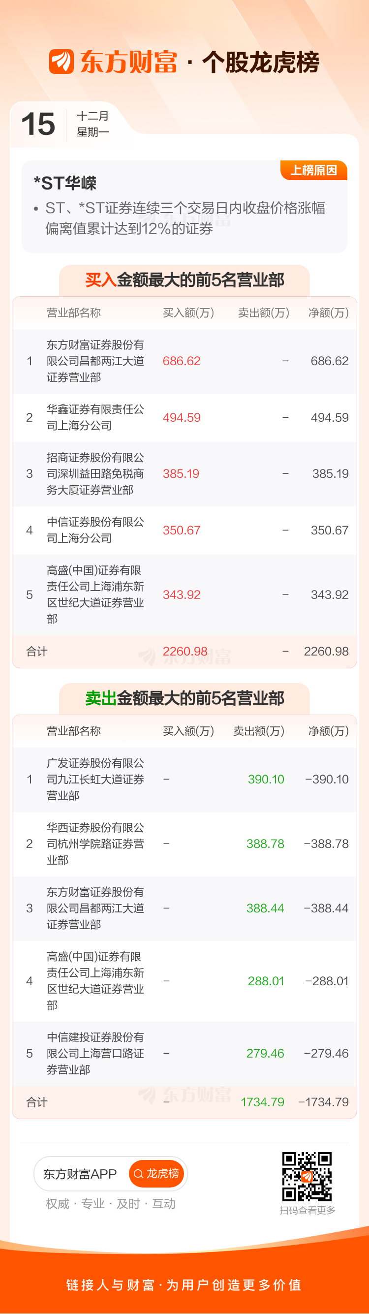 *ST华嵘(600421)龙虎榜数据(12-15)