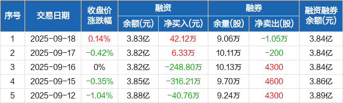 昆药集团:融资净买入42.12万元,融资余额3.83亿元(09-18)