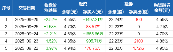 青松建化:融资净偿还1497.21万元,融资余额4.55亿元(09-26)