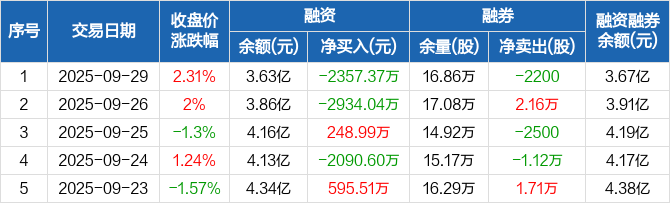 华鲁恒升:融资净偿还2357.37万元,融资余额3.63亿元(09-29)