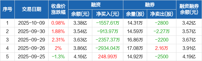 华鲁恒升:融资余额3.38亿元,创近一年新低(10-09)