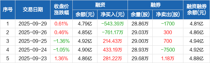 中远海特:融资净偿还543.39万元,融资余额4.79亿元(09-29)