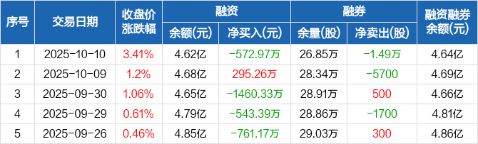 中远海特:融资净偿还572.97万元,融资余额4.62亿元(10-10)