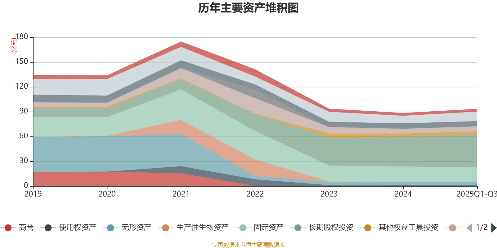资产重大变化方面,截至2025年三季度末,公司长期股权投资较上年末增加11.11%,占公司总资产比重上升2.13个百分点;固定资产较上年末减少4.79%,占公司总资产比重下降2.04个百分点;货币资金较上年末增加23.34%,占公司总资产比重上升1.77个百分点;应收票据及应收账款较上年末减少4.51%,占公司总资产比重下降0.69个百分点。
