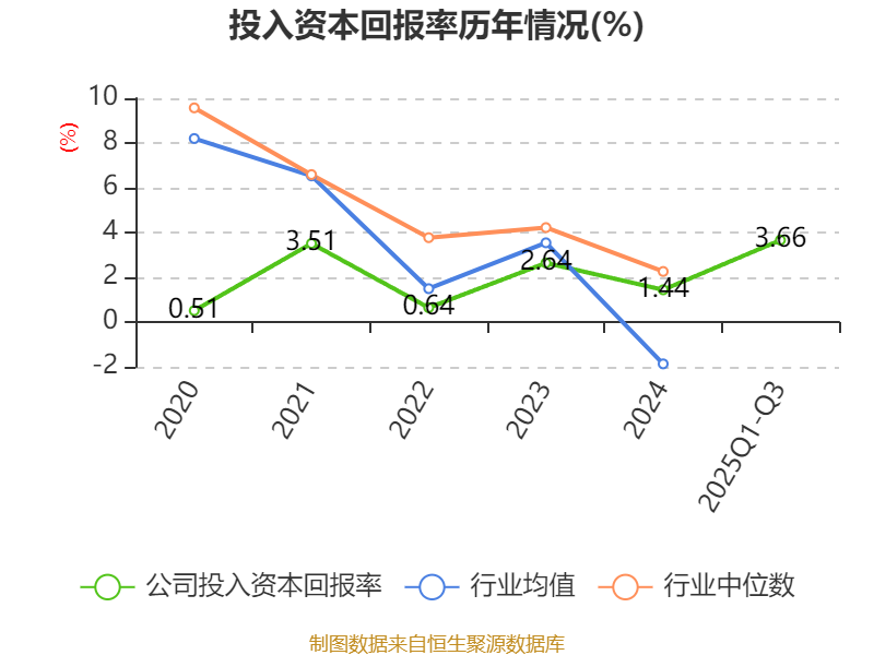 盈利能力方面, 2025年前三季度公司加权平均净资产收益率为4.64%,同比上升2.57个百分点。公司2025年前三季度投入资本回报率为3.66%,较上年同期上升1.47个百分点。